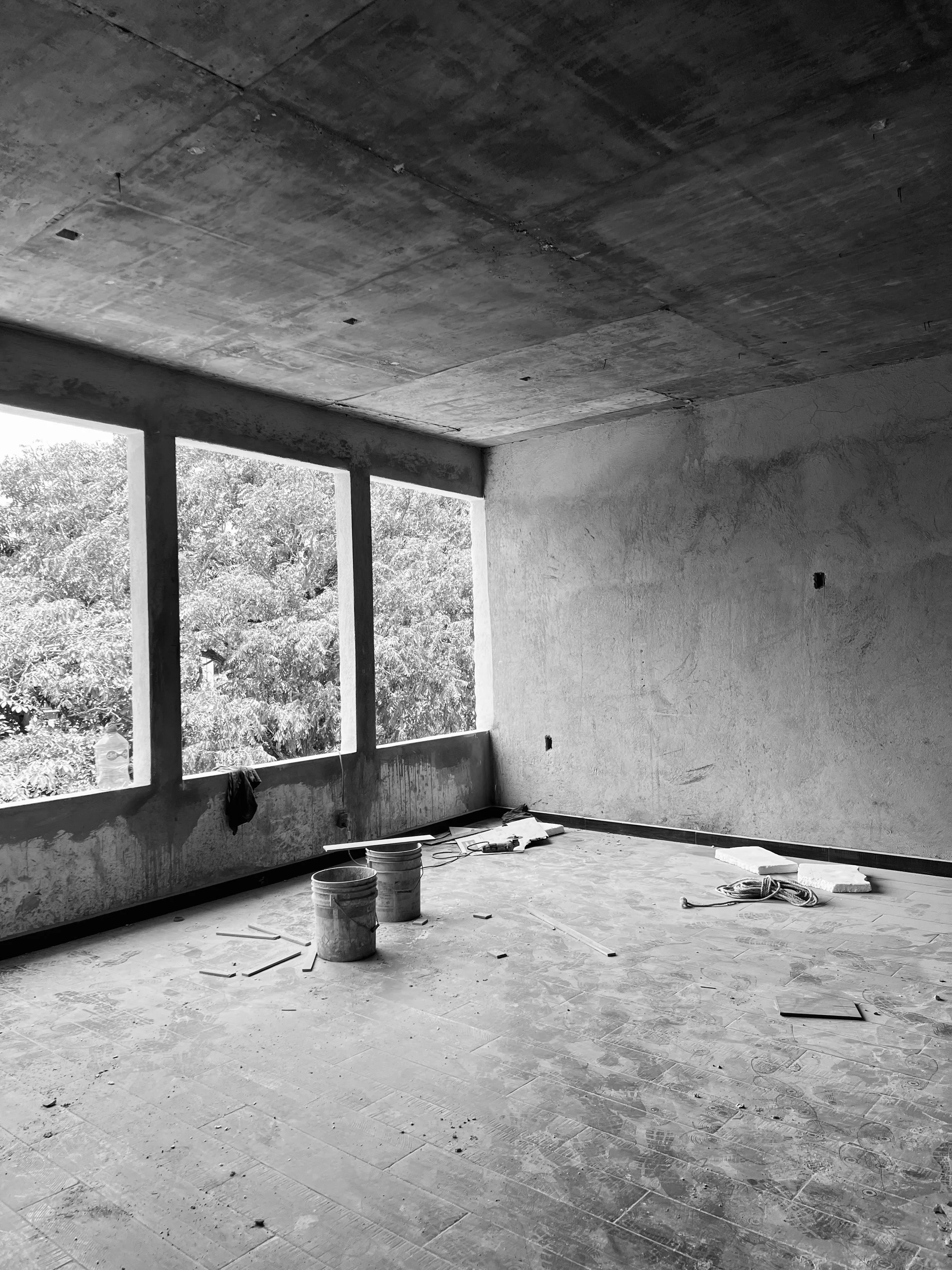 Retiro de impermeabilizacion caducada, empastado y pintado en interiores (muros divisorios, muros colindantes, fachadas exteriores e interiores). Se componen plafones dañados y muros con grietas.